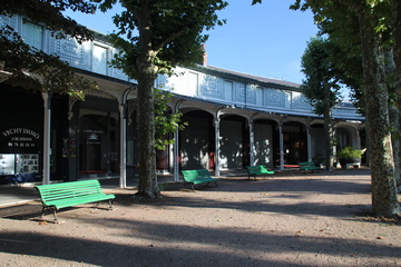 Na het douchen wandel ik langs de rivier. Het is een aardig toeristenstraatje met diverse restaurants. Ze zijn allemaal gesloten en gaan pas om 19.30 uur open. Ik heb geen zin om 40 minuten te wachten en besluit de stad in te wandelen. Na de brug wandel ik op goed geluk de stad in. Er staat een lelijke moderne kerk. Er omheen zijn wel enkele hotels maar ik heb niet het gevoel midden in de stad te zijn. Ik loop een stukje verder naar het noorden. Rond het Parc Des Sources heb ik het gevoel in het centrum van de stad te zijn. Het is inmiddels 19.30 uur en net buiten het park neem ik plaats op een leuk terrasje om te gaan eten.