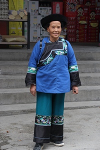 In Boa Jing is het gezellig druk op straat. Dit is ook één van de hoogtepunten van China. In elk dorp of stad is een heerlijke bedrijvigheid langs de weg. De één staat auto's of fietsen te repareren, de ander heeft een winkeltje of probeert zijn mais of iets dergelijks te drogen en weer een ander heeft een fietskar met kooktoestel en maakt eten klaar of staat fruit te verkopen. Dit dorp is nog extra bijzonder omdat er -net als de afgelopen dagen in de bergen- hier mensen van een ander volk dan de Hanchinesen rond lopen. Ik noem het maar voor het gemak een bergvolk, omdat ik ze alleen in de bergen tegen kom en omdat ik niet de naam van dit volk weet. De mannen en vrouwen zijn een stuk kleiner dan de Chinesen, ze hebben meestal een muts op, ze hebben andere kleding aan en dragen meestal een rieten mand op hun rug.